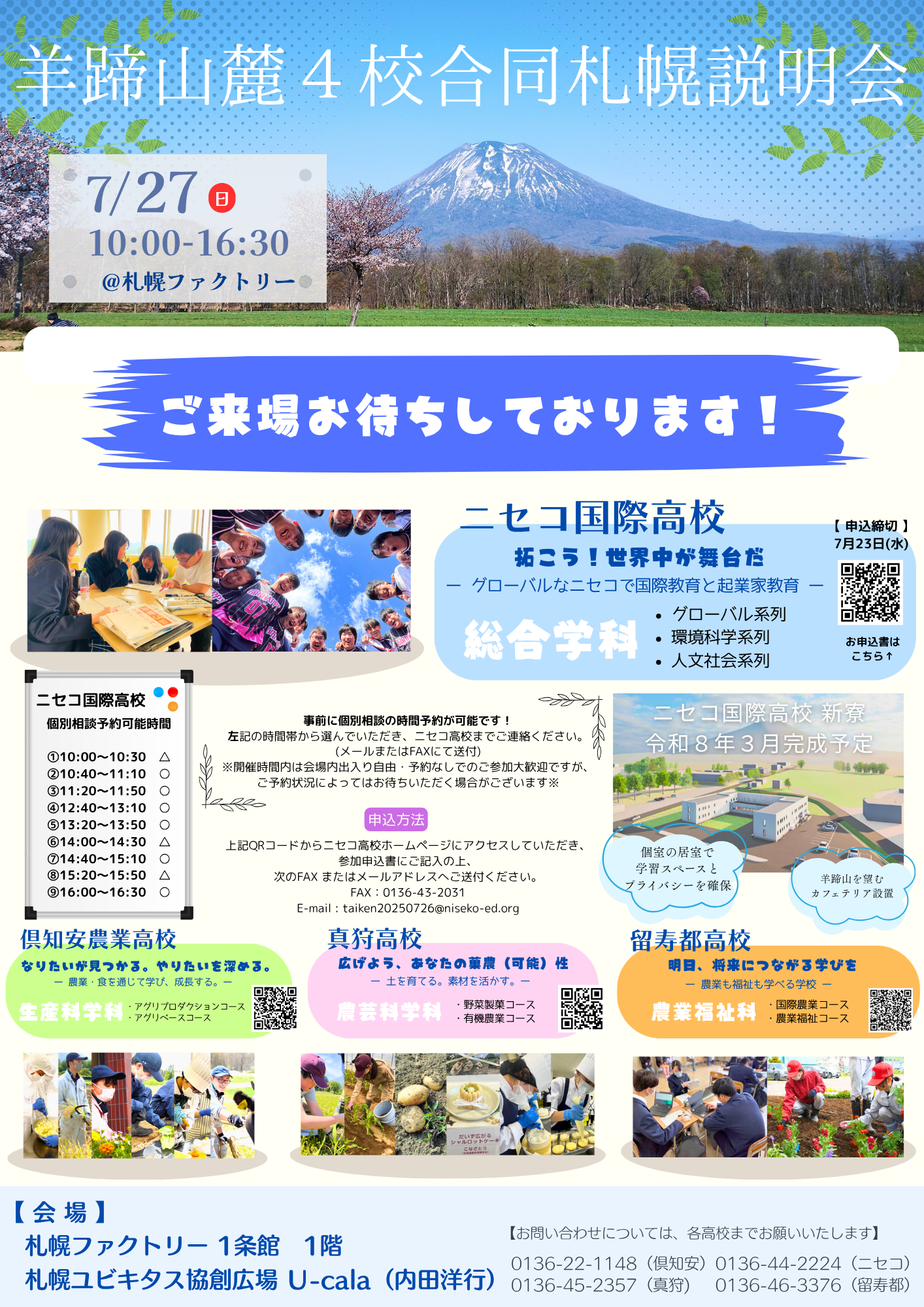 羊蹄山麓4校合同札幌説明会を開催いたします!